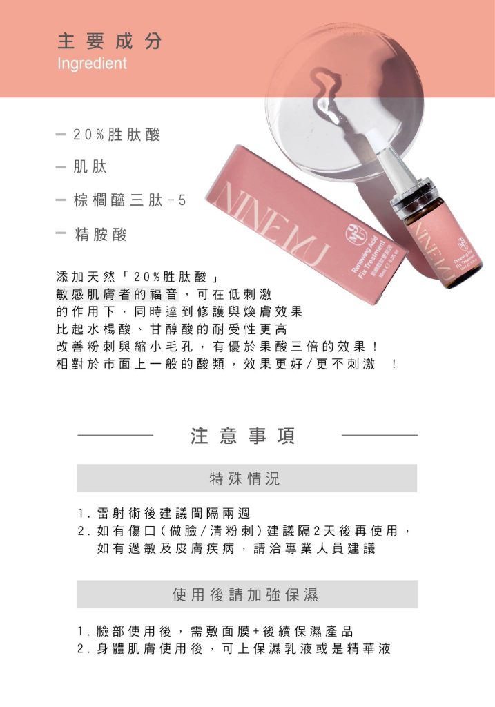 而胜肽酸則是敏感肌膚者的福音,可在低刺激的作用下同時達到肌膚修護與煥膚的效果